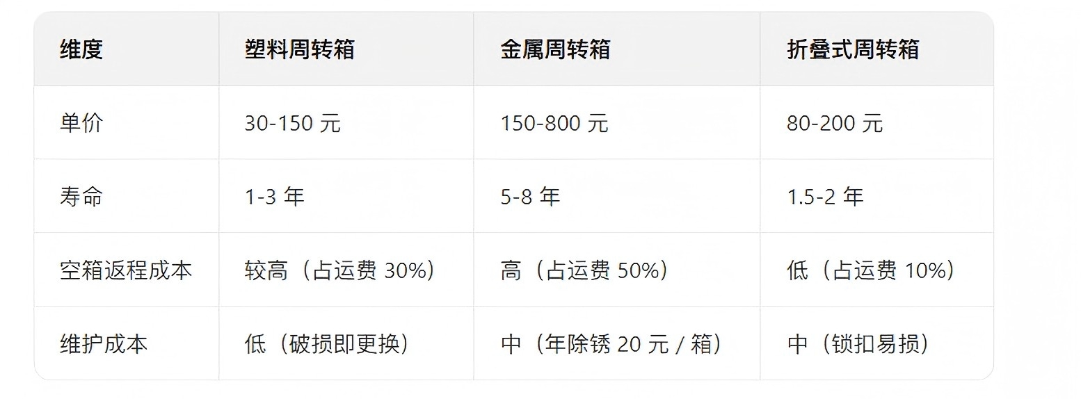 案例参考:某机械企业(重型货物)选用金属箱,虽初期投入高,但 5 年总成本比频繁更换塑料箱低 40%;某电商(轻量日用品)用折叠箱,年空箱返程成本从 20 万元降至 5 万元。